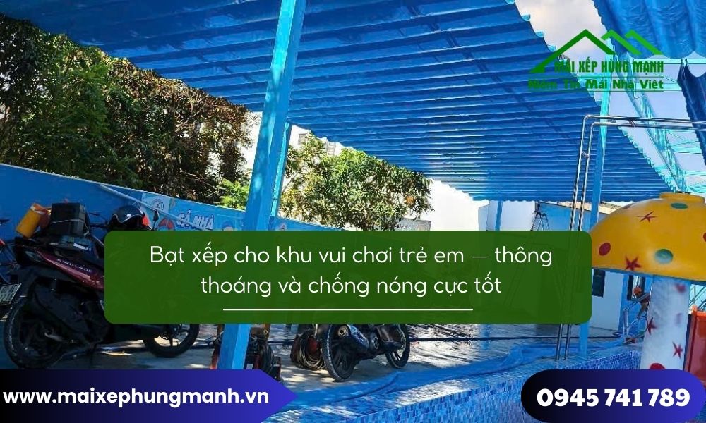 Bạt xếp cho khu vui chơi trẻ em là giải pháp che chắn hiệu quả, giúp không gian luôn thông thoáng, mát mẻ và an toàn cho trẻ nhỏ. Khi được thiết kế đúng kỹ thuật và thi công bởi đơn vị uy tín như Mái xếp Hùng Mạnh, hệ mái xếp không chỉ chống nóng tốt mà còn góp phần nâng cao chất lượng không gian vui chơi ngoài trời.