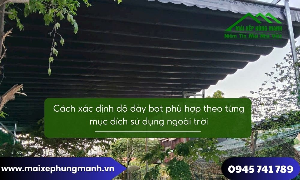 Với kinh nghiệm thi công thực tế cho nhiều công trình khác nhau, Mái xếp Hùng Mạnh nhận thấy việc chọn đúng độ dày bạt xếp ngoài trời theo từng mục đích sử dụng sẽ giúp tối ưu chi phí và hiệu quả sử dụng rõ rệt.