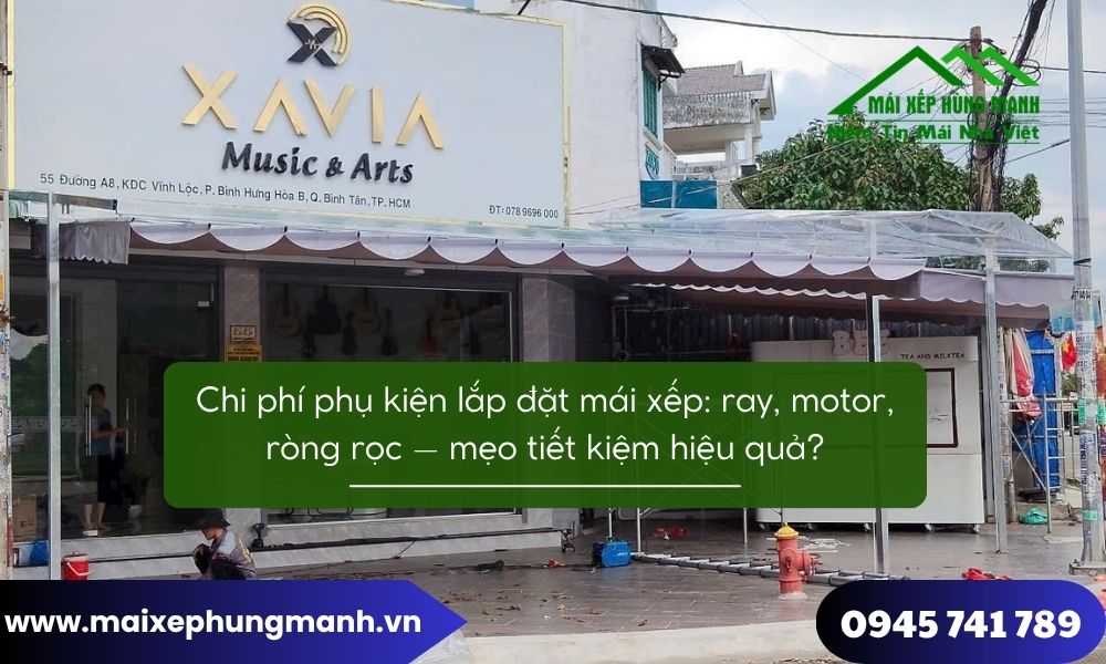 Tổng chi phí phụ kiện thường chiếm khoảng 30–40% tổng giá trị mái xếp hoàn thiện, tùy loại motor và quy mô công trình.