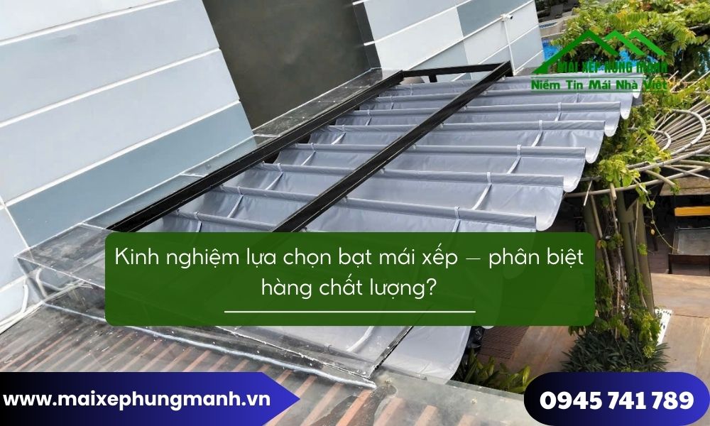 Theo chia sẻ từ Mái xếp Hùng Mạnh, khách hàng nên yêu cầu xem mẫu bạt thực tế, kiểm tra độ dày, độ dai và thử khả năng chống thấm. Ngoài ra, bạt xếp chất lượng thường có thông tin rõ ràng về xuất xứ, thông số kỹ thuật, không mập mờ như hàng trôi nổi.