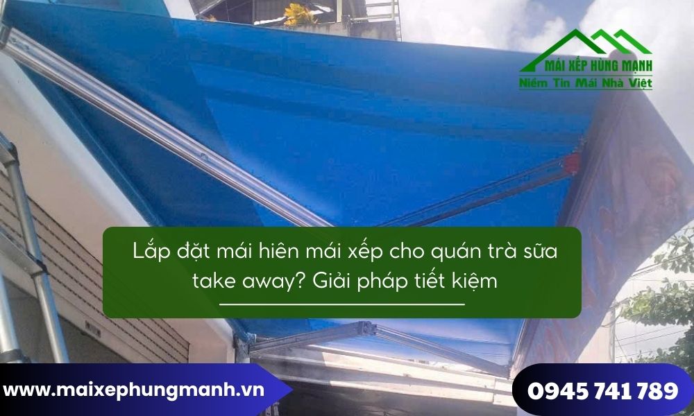 Giá lắp mái hiên – mái xếp thay đổi tùy kích thước, loại bạt, loại khung và yêu cầu thẩm mỹ của từng quán. Mô hình quán trà sữa take away thường có diện tích nhỏ đến trung bình, vì thế chi phí đầu tư rất hợp lý nhưng vẫn đảm bảo hiệu quả sử dụng dài lâu khi chọn đúng đơn vị thi công uy tín như Mái xếp Hùng Mạnh.