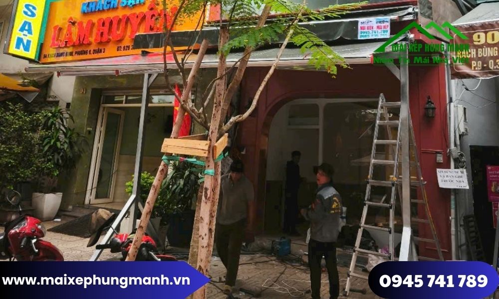 Một mái xếp đẹp chưa đủ, điều quan trọng là phải bền bỉ và phù hợp vị trí. Lắp đặt đúng kỹ thuật sẽ giảm thiểu các rủi ro như đọng nước, bạt chảy xệ, hoặc khung cong khi gặp gió lớn. Đội ngũ của Mái xếp Hùng Mạnh luôn khảo sát kỹ mặt bằng trước khi thi công để đảm bảo an toàn và tuổi thọ công trình.