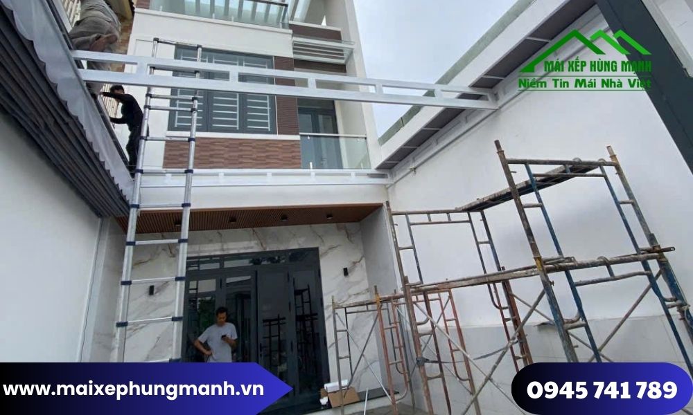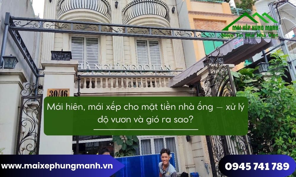 Nếu xử lý không đúng, mái hiên hoặc mái xếp có thể nhanh xuống cấp, rung lắc khi gió lớn, thậm chí ảnh hưởng đến an toàn công trình và người sử dụng. Bài viết dưới đây sẽ phân tích chi tiết cách xử lý độ vươn và gió cho mái hiên, mái xếp mặt tiền nhà ống, dựa trên kinh nghiệm thi công thực tế của Mái xếp Hùng Mạnh.
