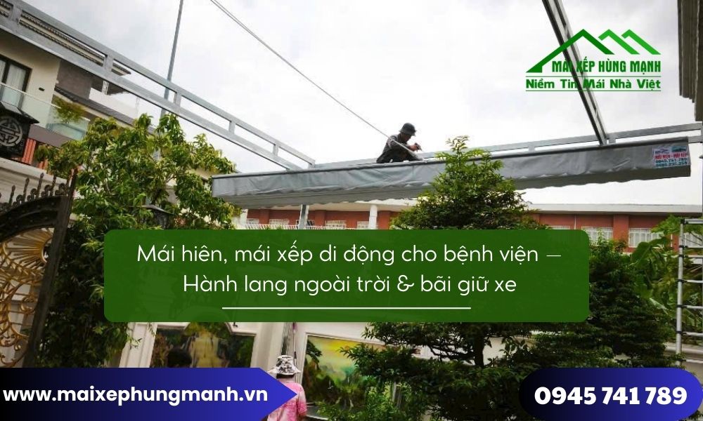 Mái hiên mái xếp di động cho bệnh viện là giải pháp thiết thực giúp bảo vệ hành lang ngoài trời và bãi giữ xe, đồng thời nâng cao chất lượng hạ tầng y tế. Việc lựa chọn đúng loại mái và đơn vị thi công uy tín như Mái xếp Hùng Mạnh sẽ giúp bệnh viện tối ưu chi phí, đảm bảo an toàn và mang lại giá trị sử dụng bền vững theo thời gian.