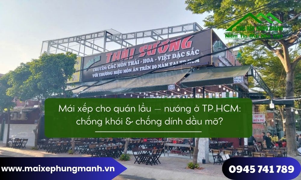 Kinh doanh quán lẩu – nướng tại TP.HCM luôn sôi động, đặc biệt ở các khu vực đông dân cư, sinh viên và công nhân. Tuy nhiên, mô hình kinh doanh này gặp nhiều thách thức: khói từ bếp nướng, hơi nóng bốc lên, dầu mỡ bám lên trần mái và tường khiến không gian nhanh xuống cấp. Bởi vậy, mái xếp cho quán lẩu nướng trở thành giải pháp tối ưu giúp quán vừa thoáng, vừa sạch, lại tiết kiệm chi phí hơn nhiều so với mái cố định.