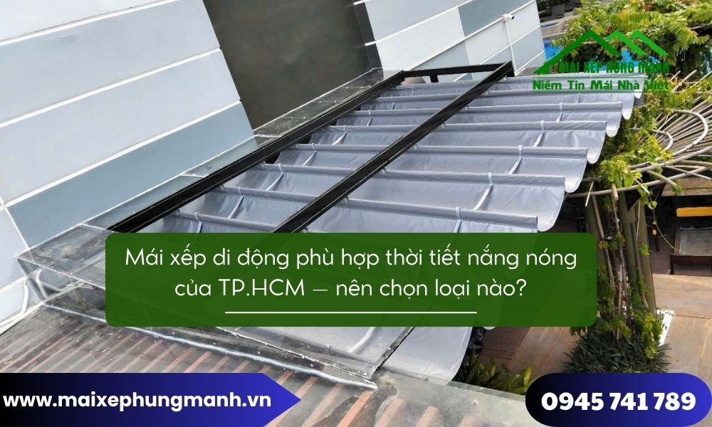 TP.HCM nổi tiếng với khí hậu nhiệt đới nóng ẩm quanh năm, nắng gắt kéo dài và lượng mưa tập trung vào mùa mưa từ tháng 5 đến tháng 11. Chính đặc điểm khí hậu này đã tạo ra những thách thức riêng cho các công trình ngoài trời, đặc biệt là mái xếp di động hay bạt xếp che nắng mưa. Việc lựa chọn loại mái xếp phù hợp không chỉ giúp bảo vệ không gian, nâng cao thẩm mỹ mà còn tiết kiệm chi phí bảo trì và tăng tuổi thọ sản phẩm.