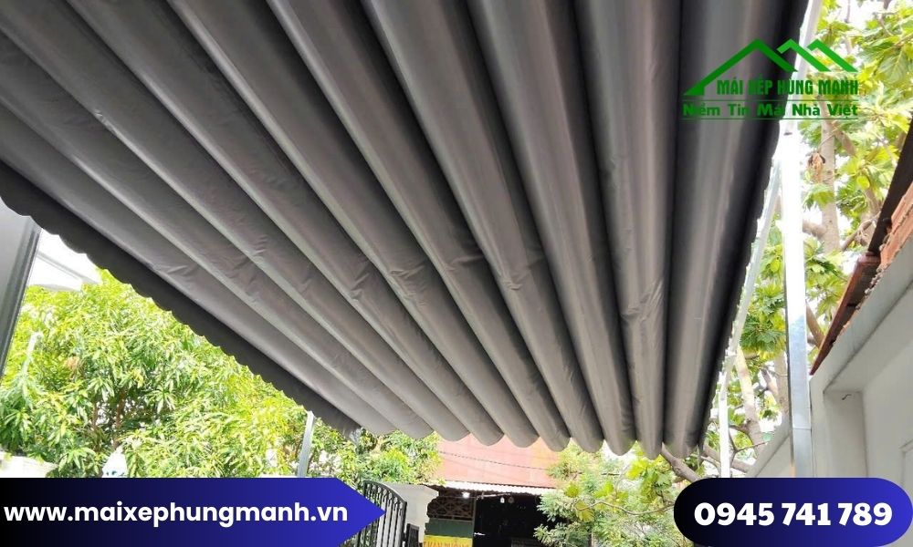 - Mái xếp kéo tay truyền thống: đơn giản nhưng hiệu quả, chi phí thấp, phù hợp gia đình cần che mưa nắng cho xe máy hoặc khu sinh hoạt.