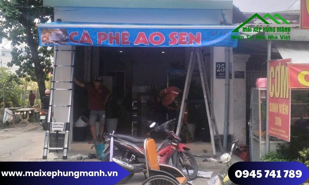 Mái xếp Hùng Mạnh là đơn vị chuyên thi công mái hiên – mái xếp cho hàng trăm quán cà phê tại TP.HCM, Bình Dương, Đồng Nai, Hà Nội và Đà Nẵng. Với đội ngũ kỹ thuật chuyên nghiệp, công ty cam kết mang đến mái hiên bền đẹp, tiện dụng và đồng nhất với phong cách thương hiệu của từng khách hàng.