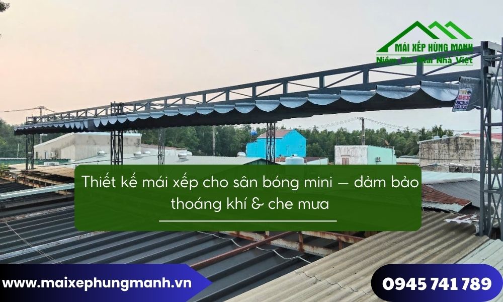 Thiết kế mái xếp cho sân bóng mini là giải pháp cân bằng giữa che mưa hiệu quả và đảm bảo không gian thoáng khí cho hoạt động thể thao. Khi được thiết kế đúng kỹ thuật và thi công bởi đơn vị chuyên nghiệp như Mái xếp Hùng Mạnh, hệ mái xếp không chỉ nâng cao trải nghiệm người chơi mà còn gia tăng giá trị khai thác lâu dài cho chủ sân.
