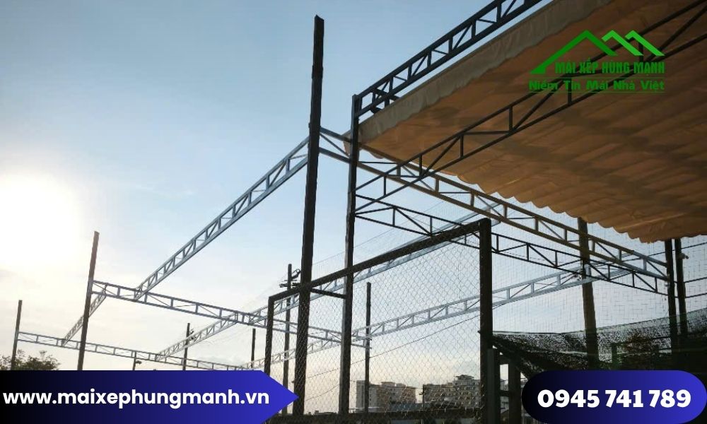 - Mái xếp bạt PVC: từ 550.000 – 850.000 VNĐ/m²