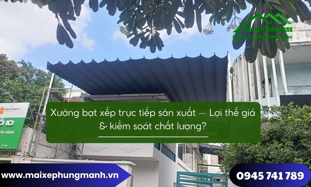 Trên thực tế, lựa chọn đúng mô hình cung cấp không chỉ giúp tiết kiệm chi phí mà còn ảnh hưởng trực tiếp đến độ bền, tính an toàn và khả năng bảo hành lâu dài của hệ mái xếp. Bài viết dưới đây sẽ phân tích rõ lợi thế về giá và khả năng kiểm soát chất lượng khi làm việc trực tiếp với xưởng bạt xếp, dựa trên kinh nghiệm thực tế của Mái xếp Hùng Mạnh – đơn vị sản xuất và thi công mái xếp nhiều năm trên thị trường.